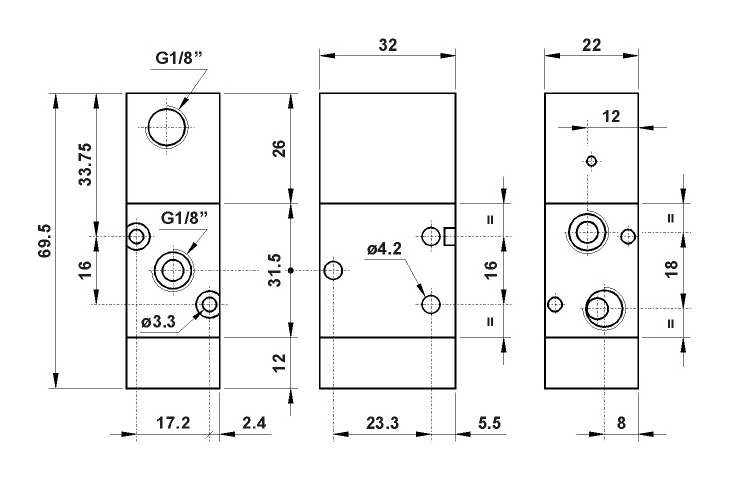 Разпределител 321 MCA, 3/2, 1/8"