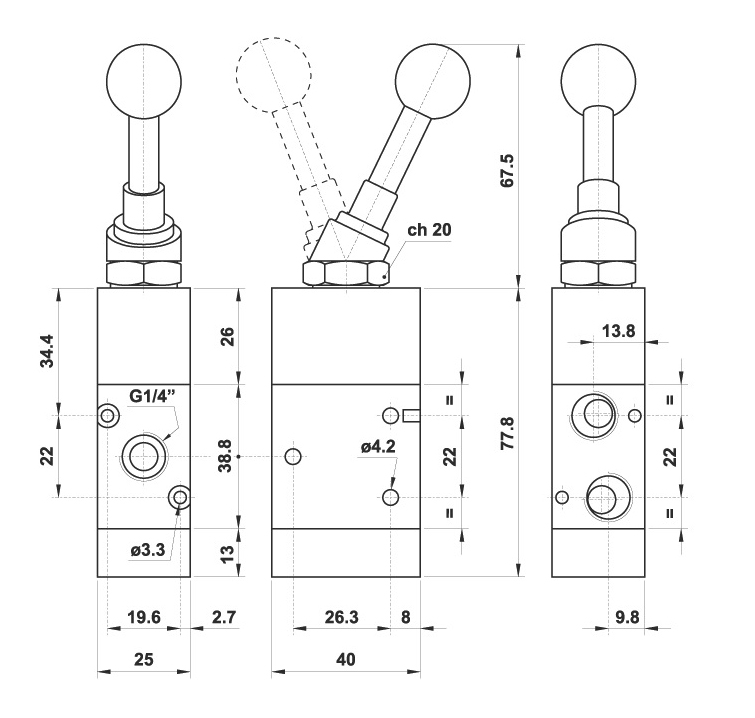 Начало / Пневматика / Разпределители / Разпределител 322 LL, 3/2, 1/4"