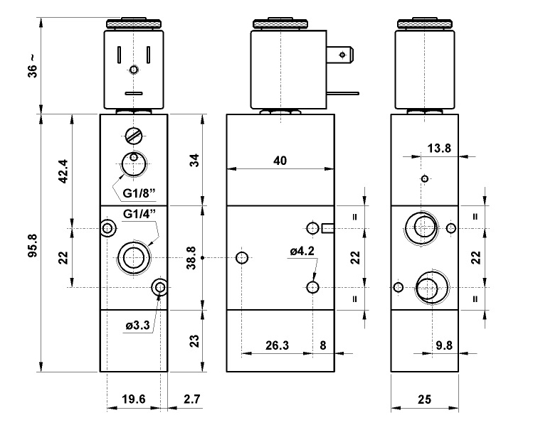 Разпределител 322 ME AS, 3/2, 1/4"