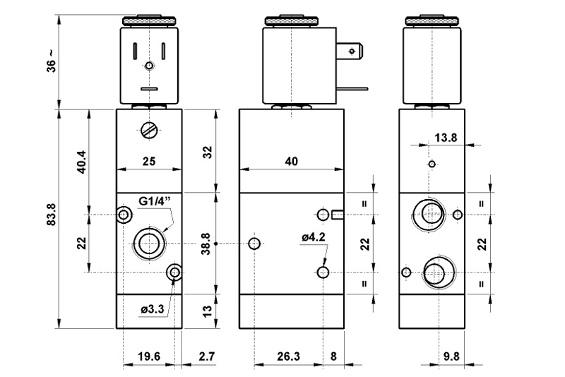 Начало / Пневматика / Разпределители / Разпределител 322 MEA, 3/2, 1/4"