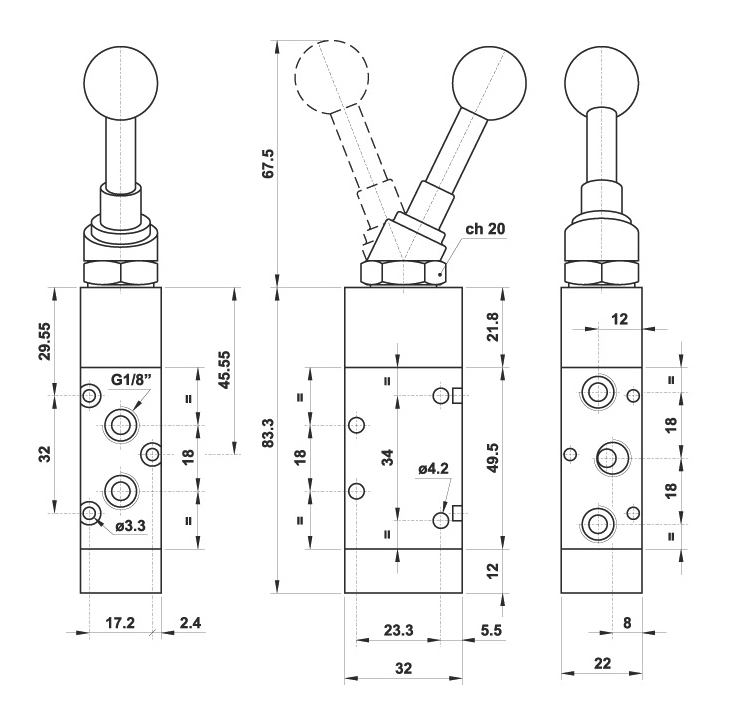 Начало / Пневматика / Разпределители / Разпределител 521 LL, 5/2, 1/8"