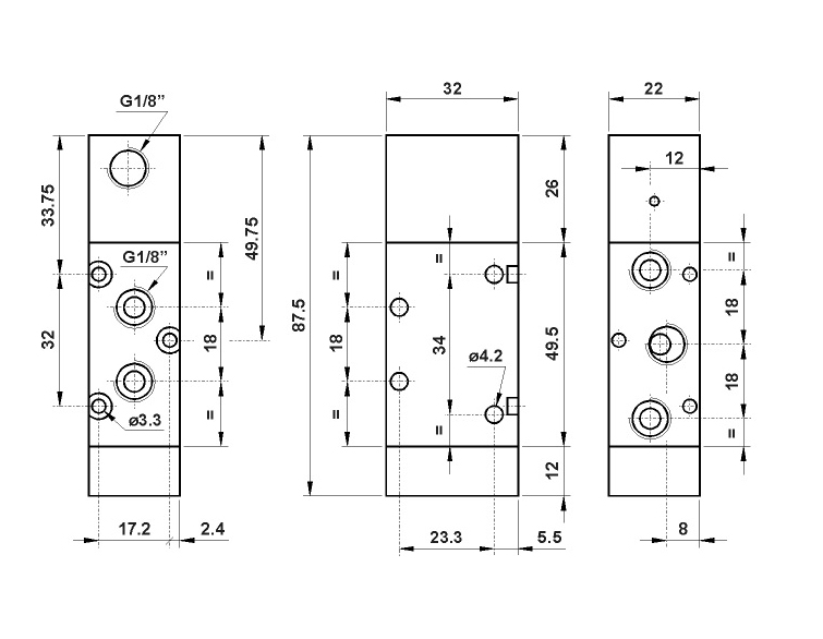 Начало / Пневматика / Разпределители / Разпределител 521 MC, 5/2, 1/8"
