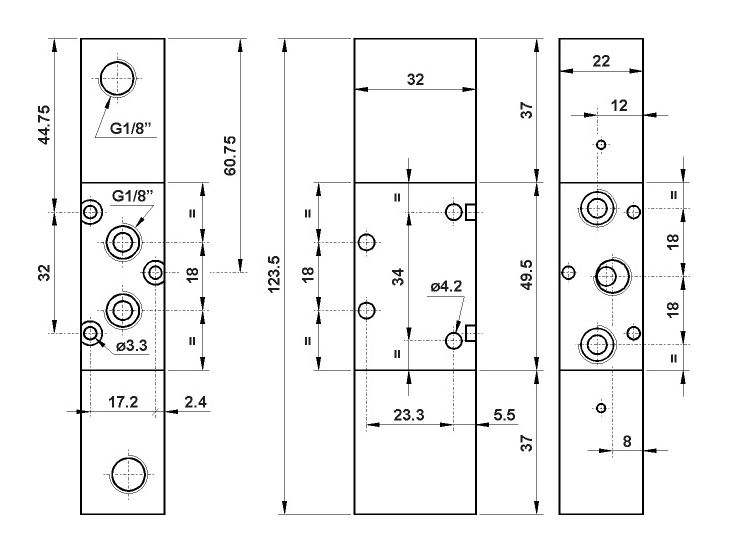 Номинален диаметър (DN): 5 mm Номинален дебит при 6 bar (QN): 550 Nl/min Работна температура: max + 60°C Работно налягане: max 10 bar Управляващо налягане: 1…10 bar Време за превключване: TRA (14): 7 ms; TRR (12): 7 ms Работен флуид: 50 µm филтриран, омаслен или неомаслен въздух