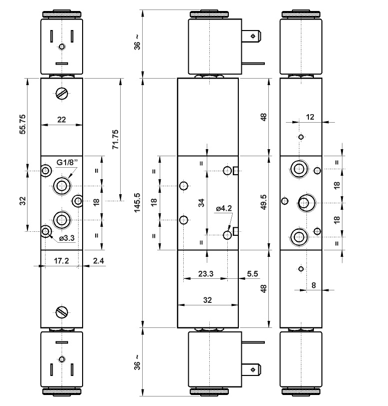 Начало / Пневматика / Разпределители / Разпределител 5213P EE, 5/3, 1/8"