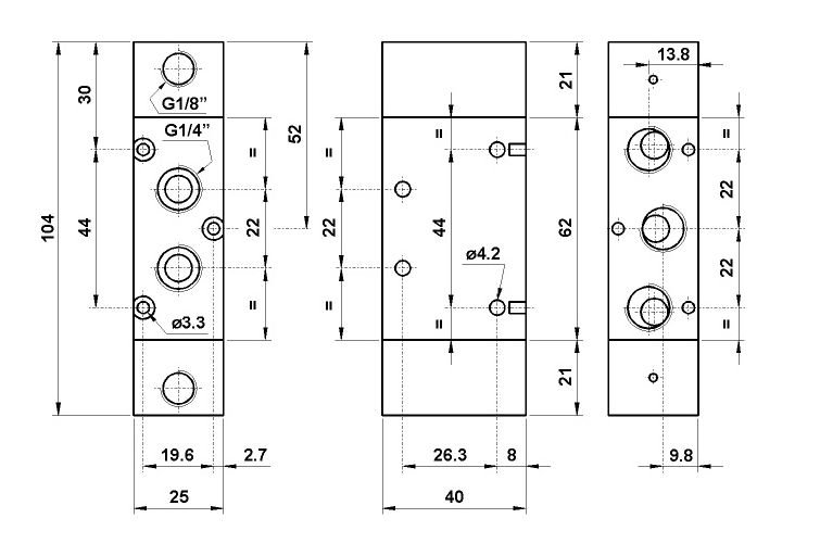 Разпределител 522 CC, 5/2, 1/4"
