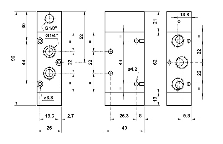 Номинален диаметър (DN): 7.5 mm Номинален дебит при 6 bar (QN): 1100 Nl/min Работна температура: max + 60°C Работно налягане: max 10 bar Управляващо налягане: 2.5…10 bar Време за превключване: TRA (14): 7 ms; TRR (12): 15 ms Работен флуид: 50 µm филтриран, омаслен или неомаслен въздух