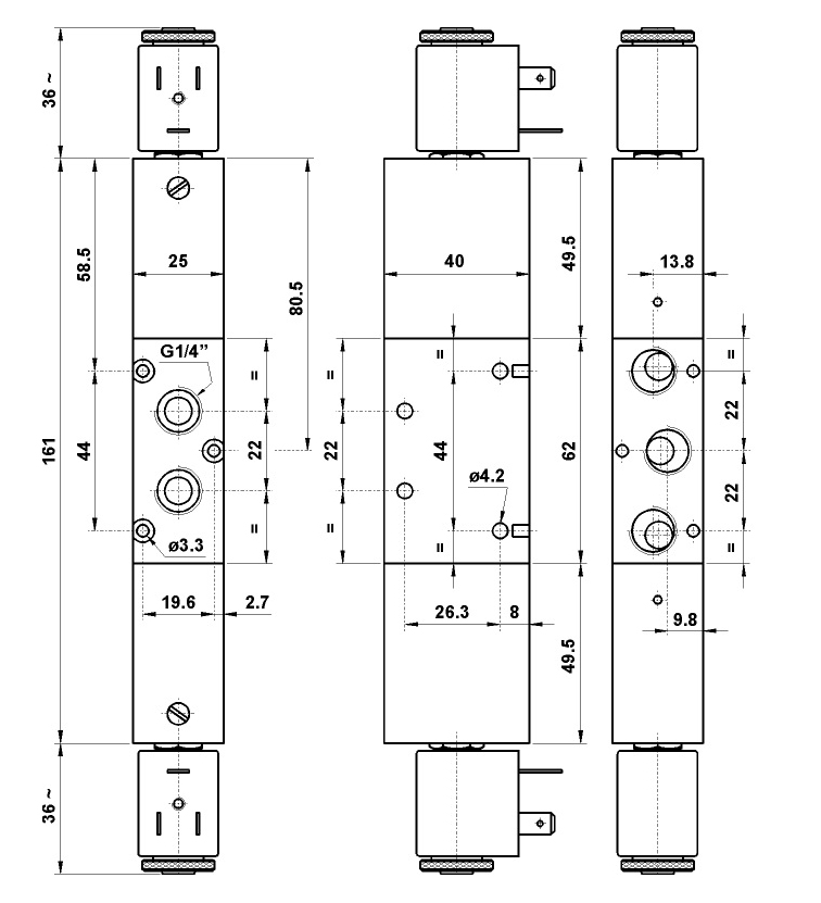 Номинален диаметър (DN): 7.5 mm Номинален дебит при 6 bar (QN): 1100 Nl/min Работна температура: max + 60°C Работно налягане: 1 ... 10 bar Време за превключване: TRA (14): 22 ms / TRR (12): 22 ms Работен флуид: 50 µm филтриран, омаслен или неомаслен въздух